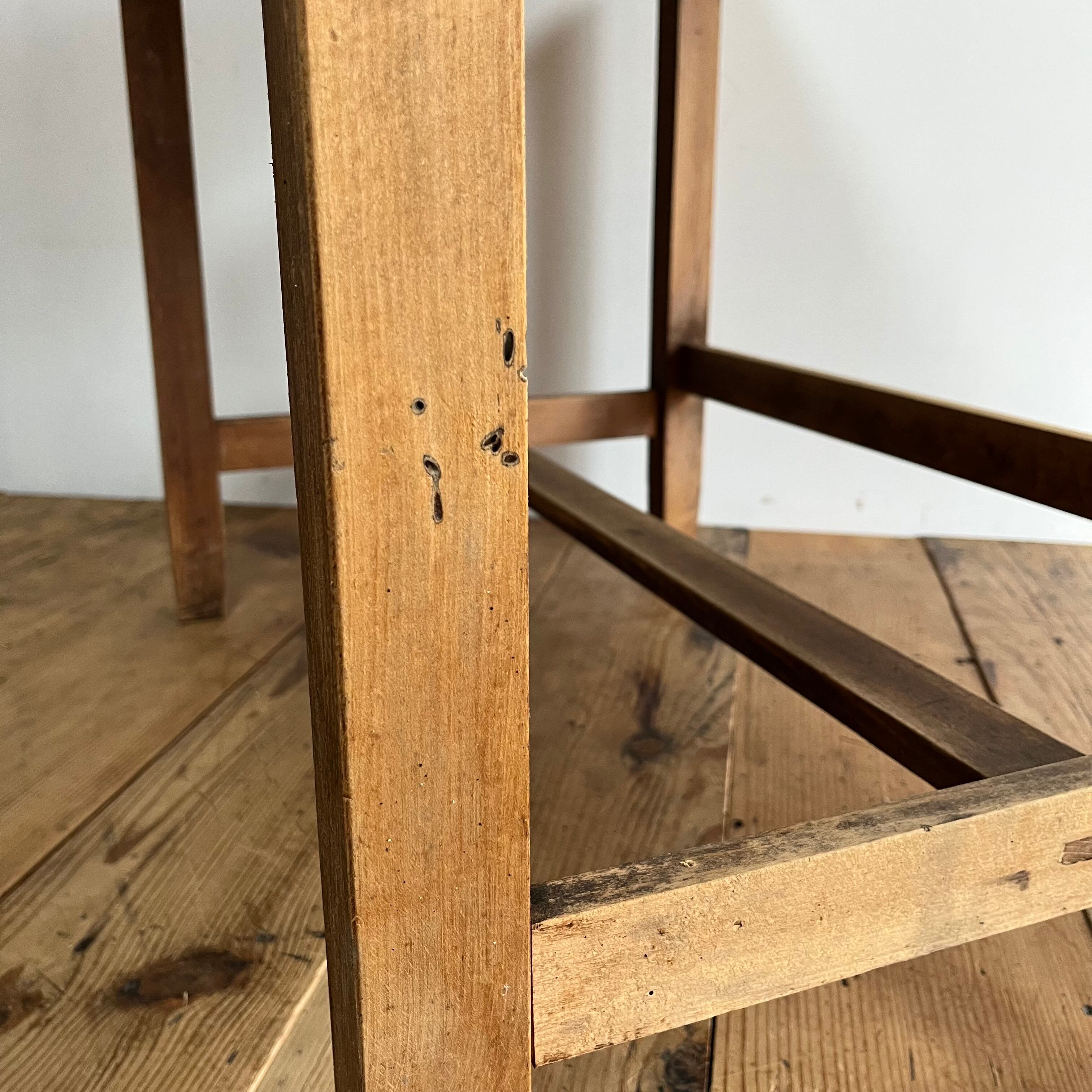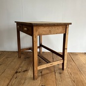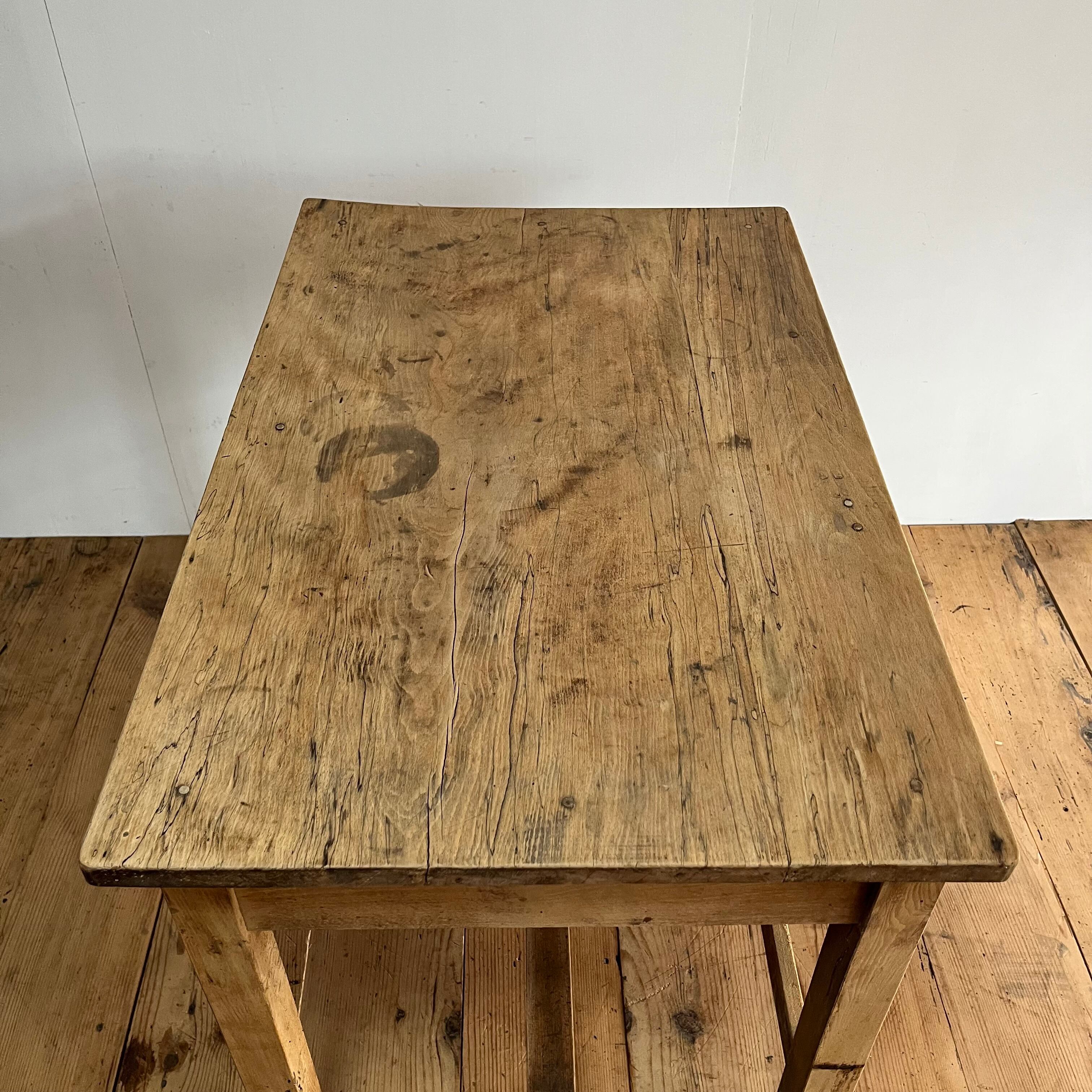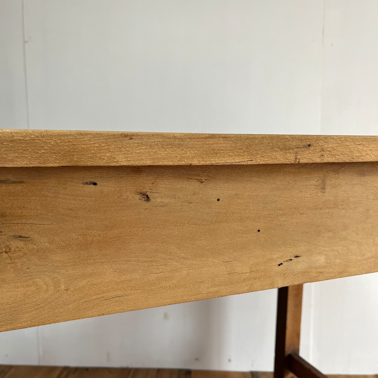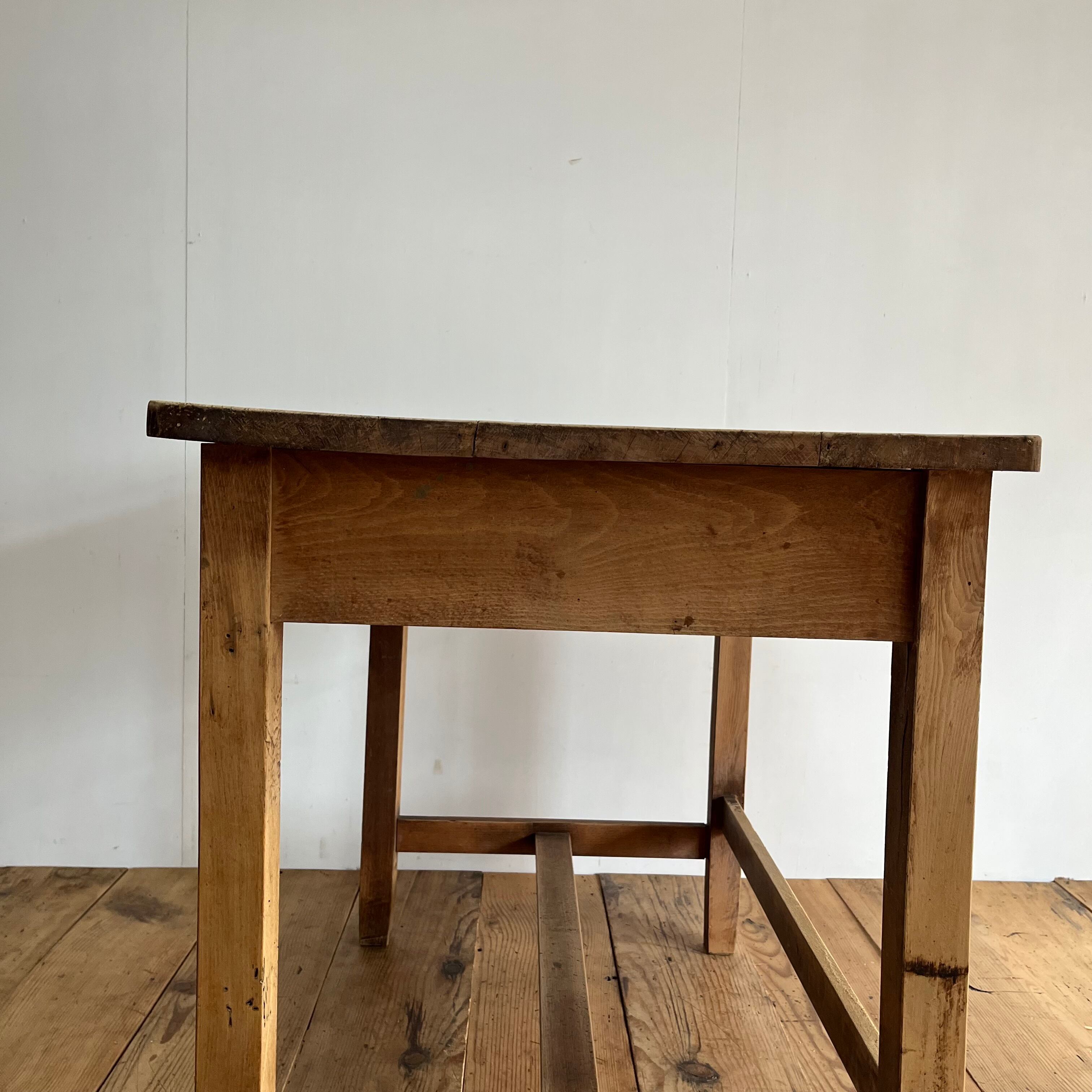 全体に傷みあり。虫食い跡あり。天板に反りあり。引き出しの開閉はスムーズです。