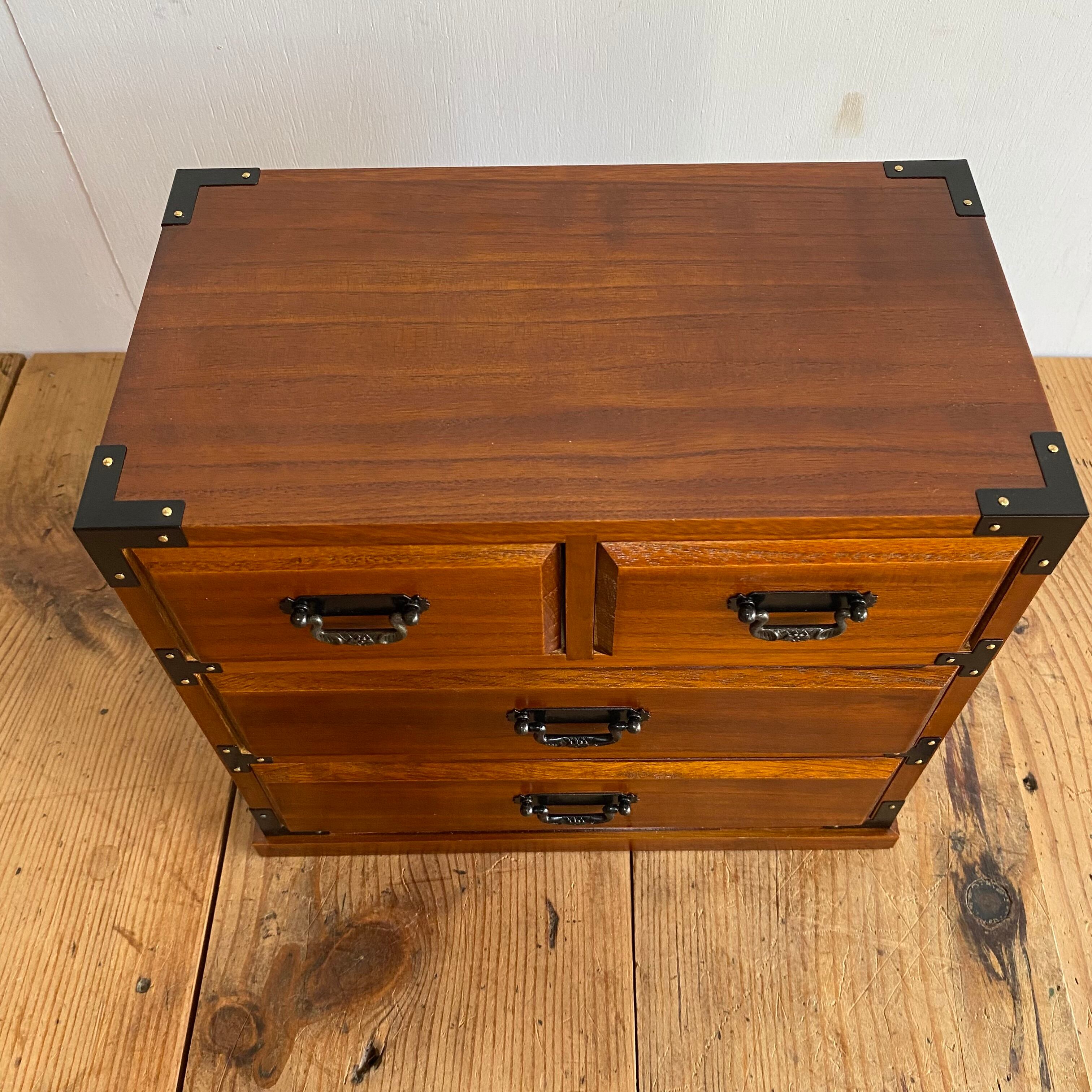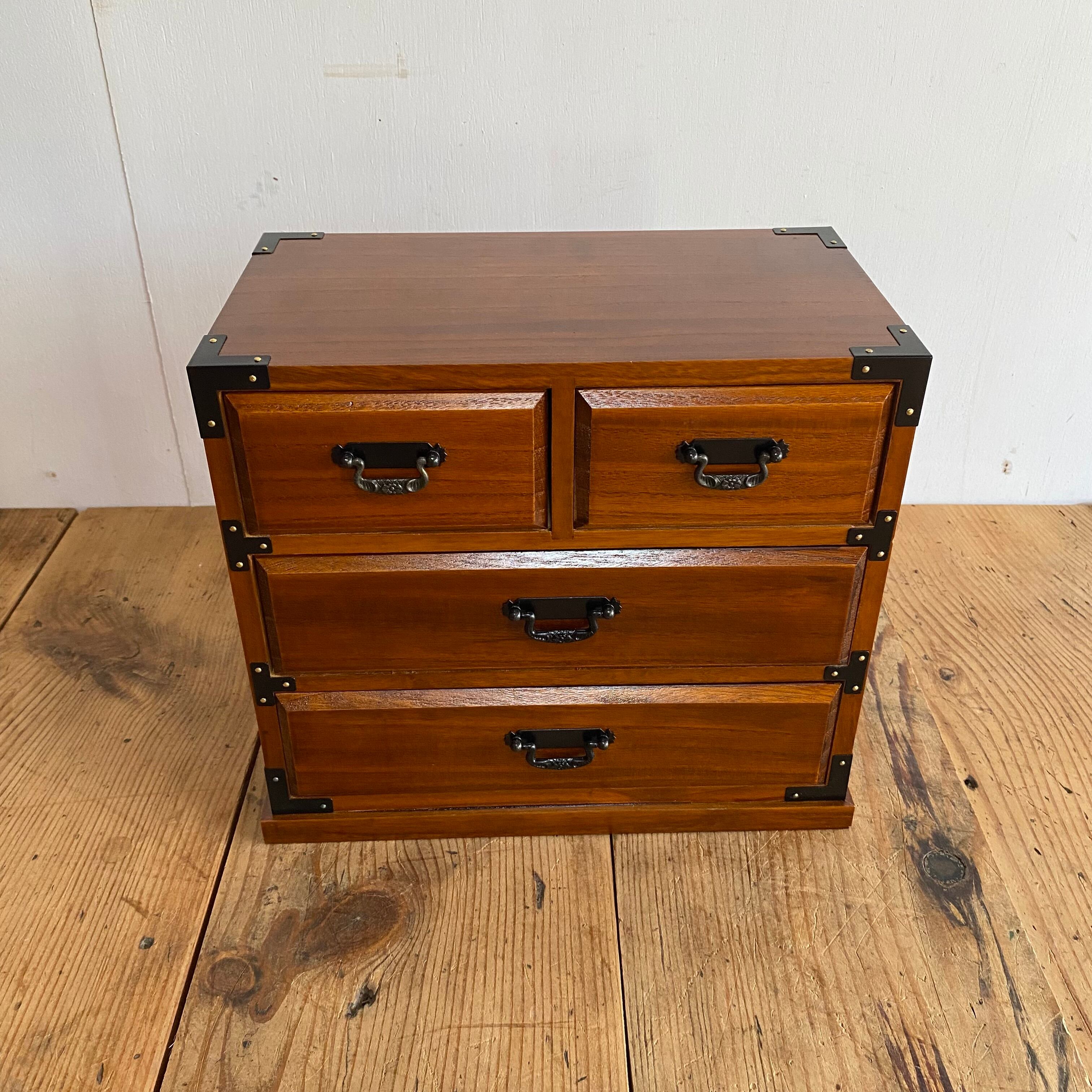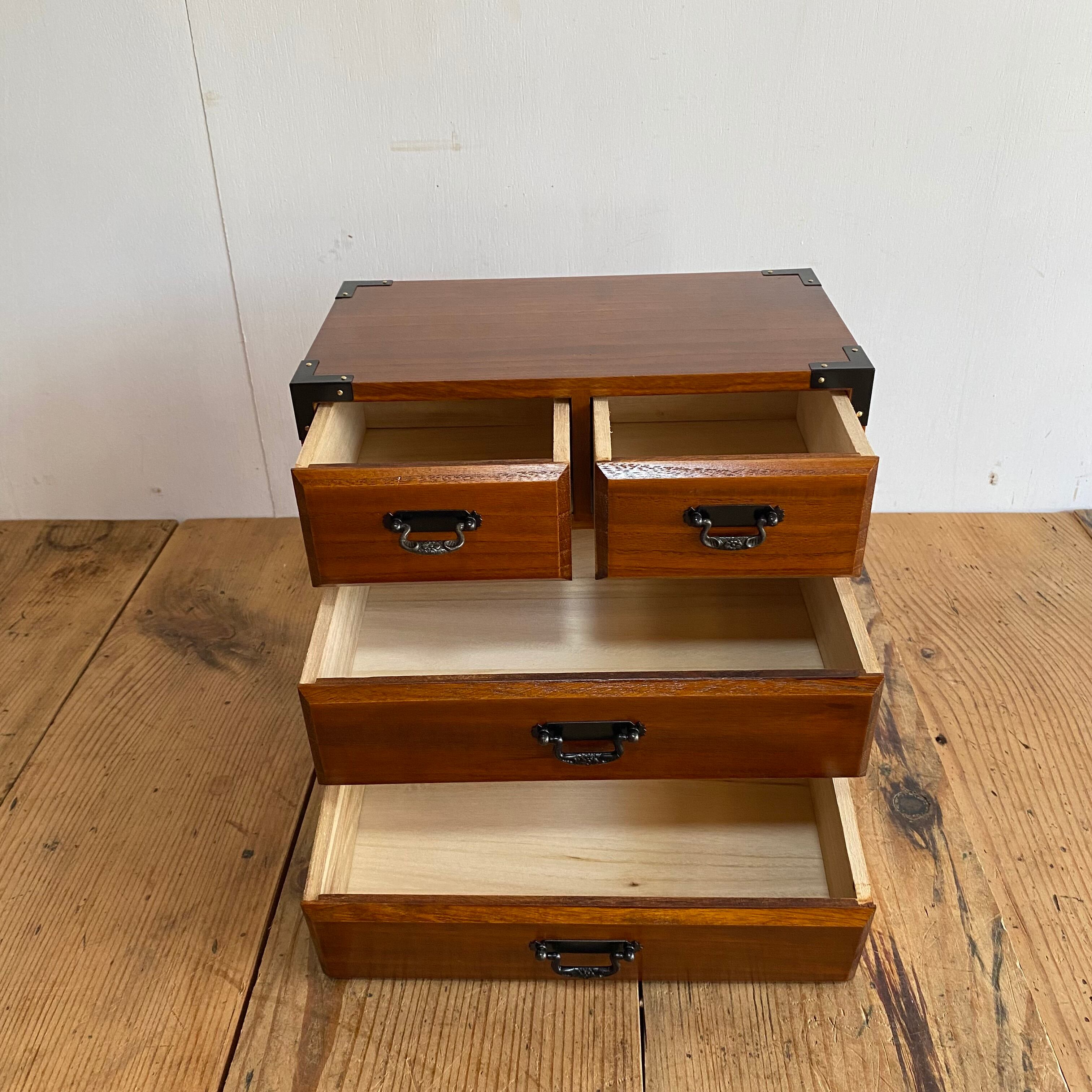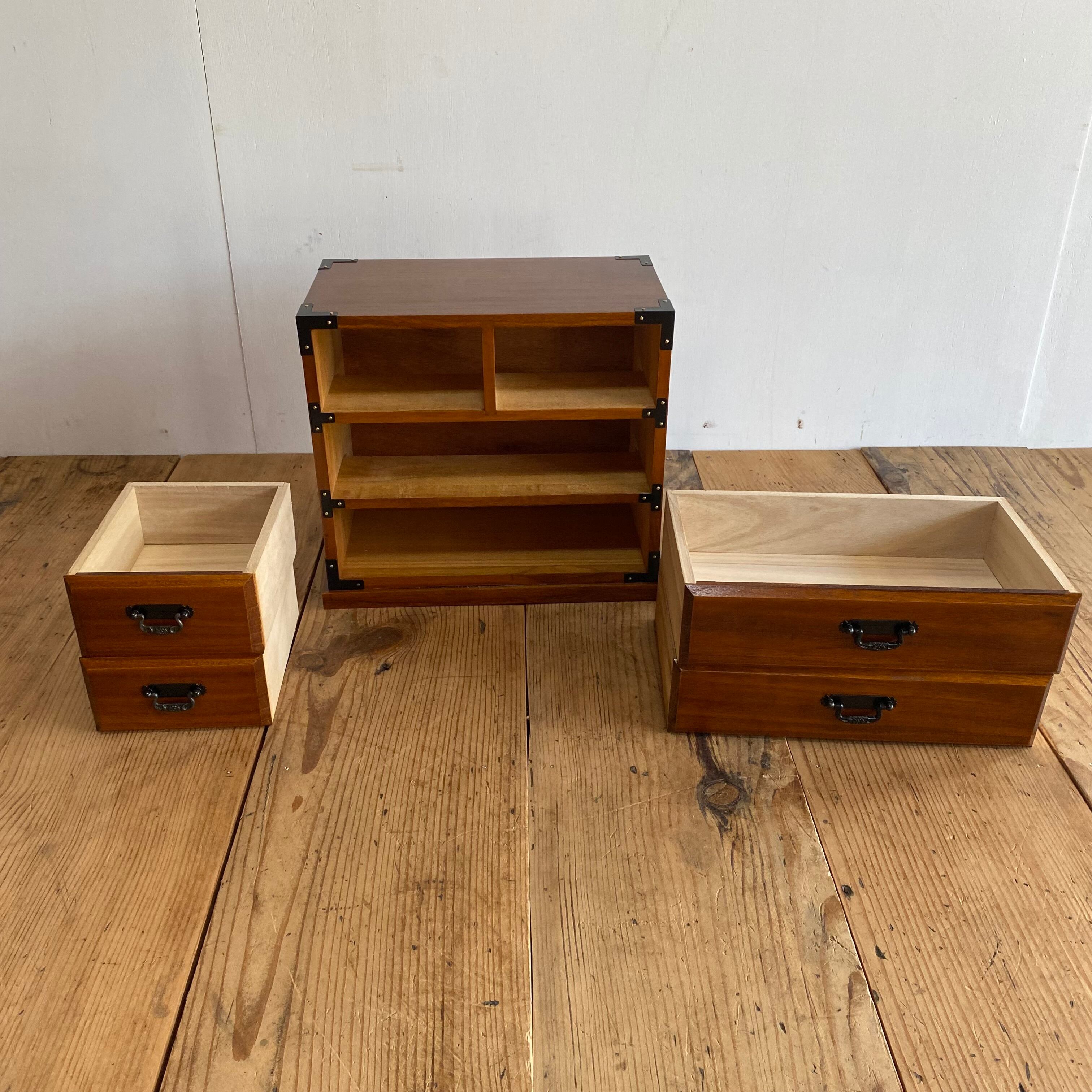 無垢材を使用した、昭和レトロな2点セットの小引き出しです。裁縫箱としてはもちろん、小物入れとしても便利にお使いいただけます。