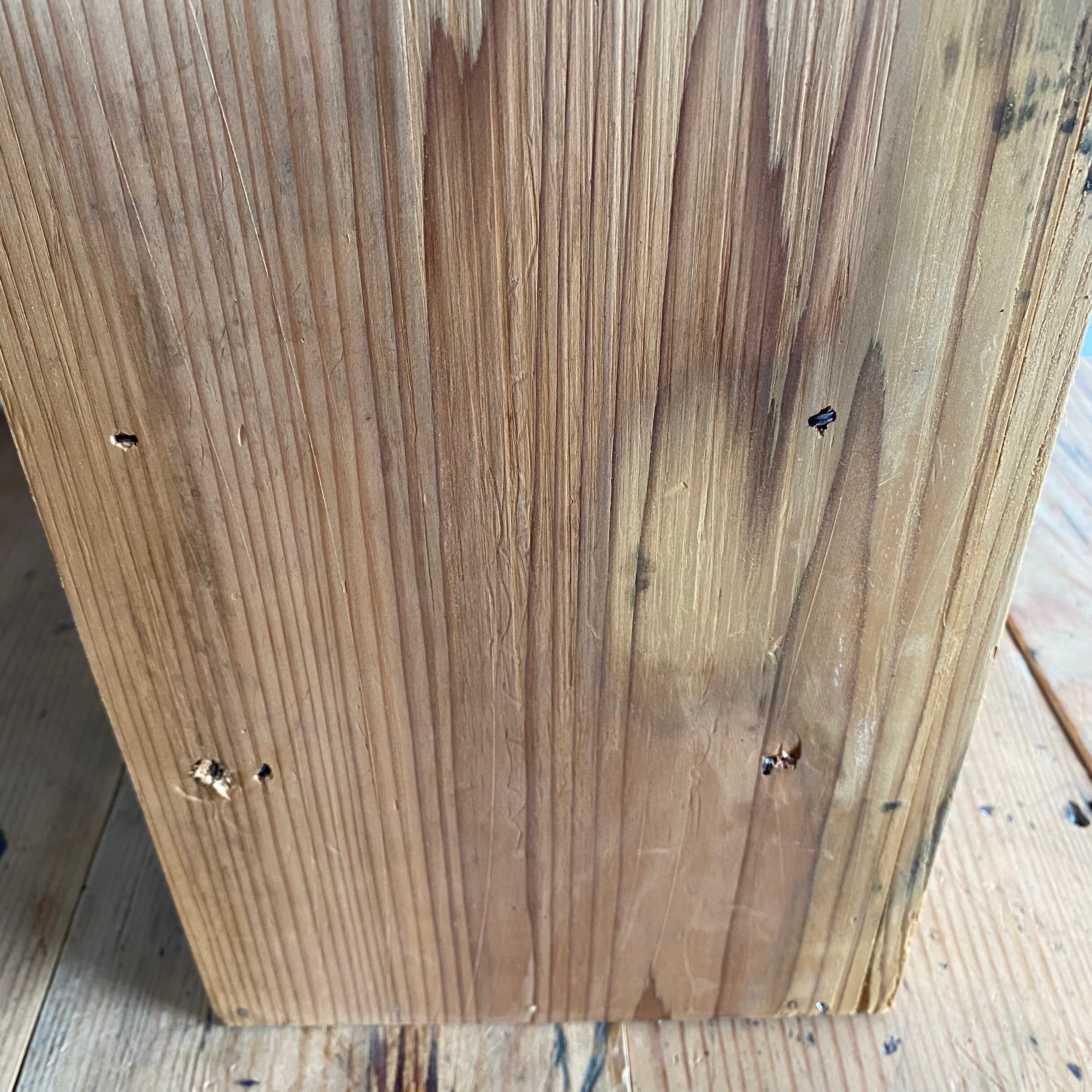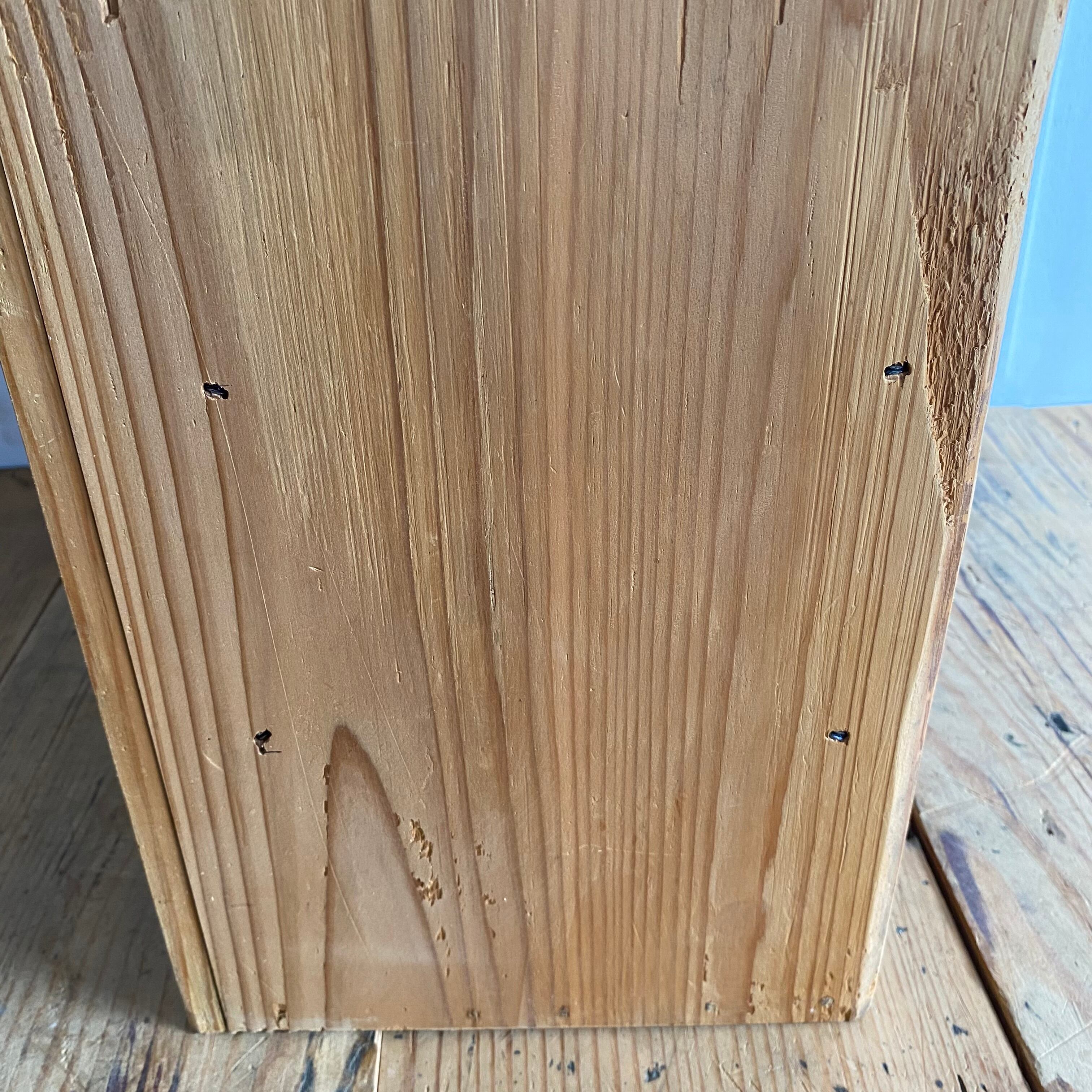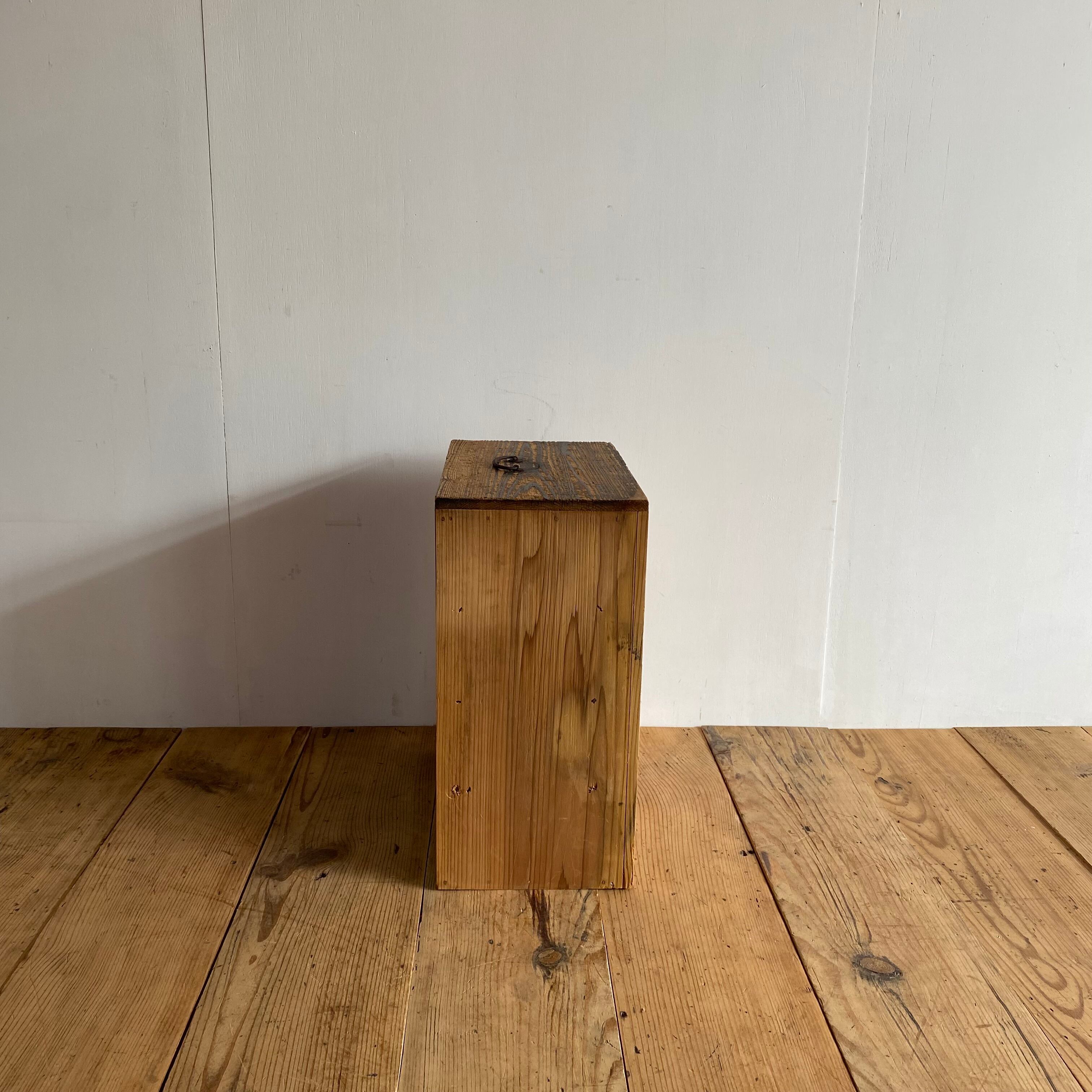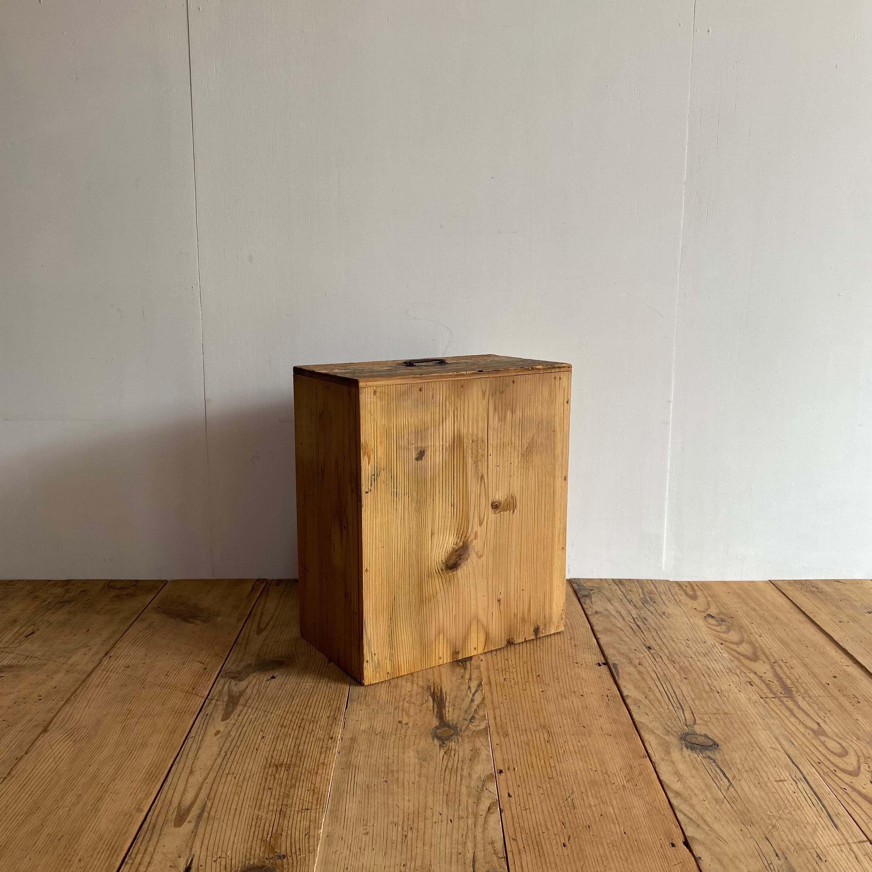 無垢材を使用した、魅力的なアンティーク木材棚です。取っ手付きのシンプルなデザインは、食器棚や小物入れとして非常に便利です。経年による風合いを感じられ、使うほどにその魅力が引き立ちます。無塗装仕上げのため、素材そのものの温もりをお楽しみいただける一点です。丁寧に洗浄されており、安心してご使用いただけます。