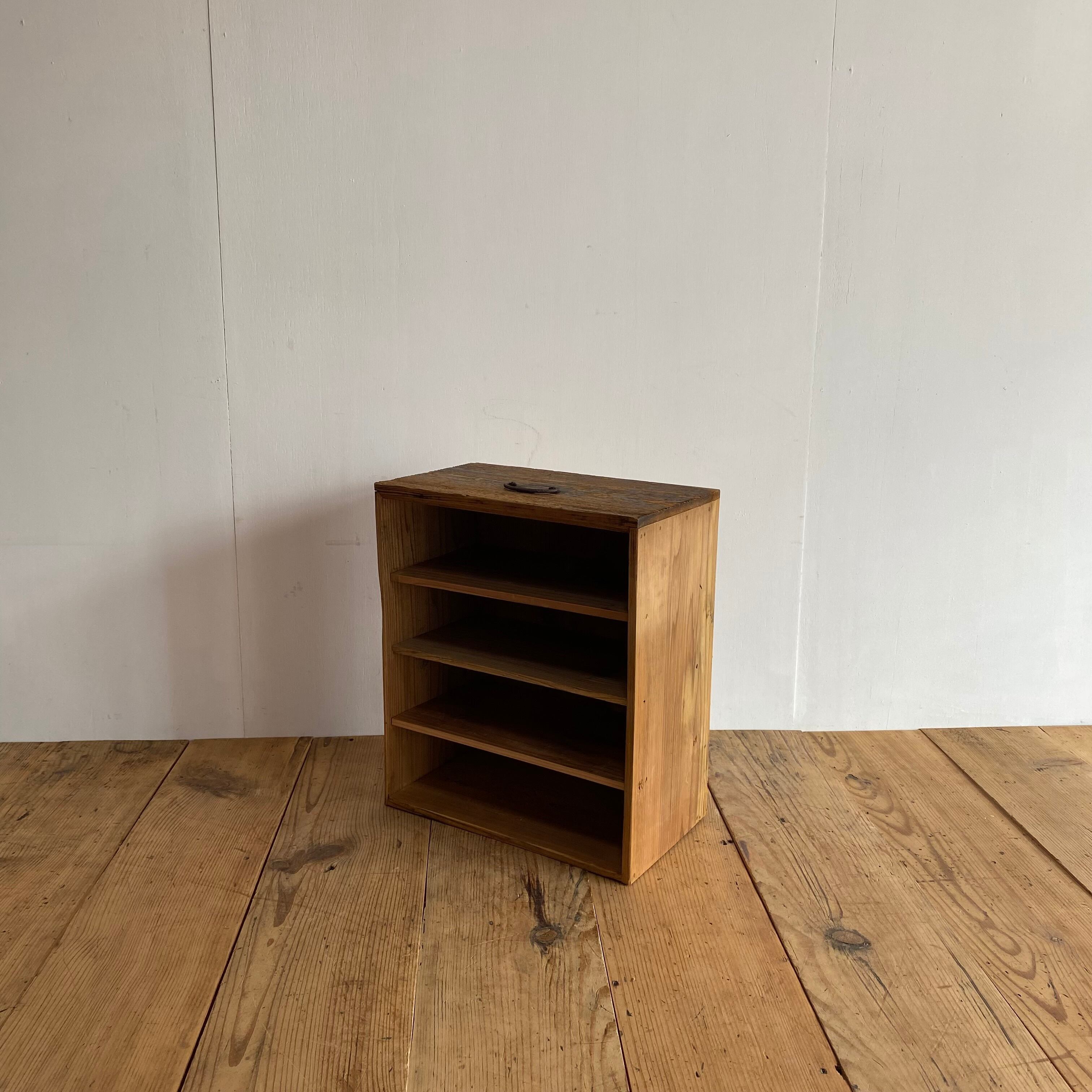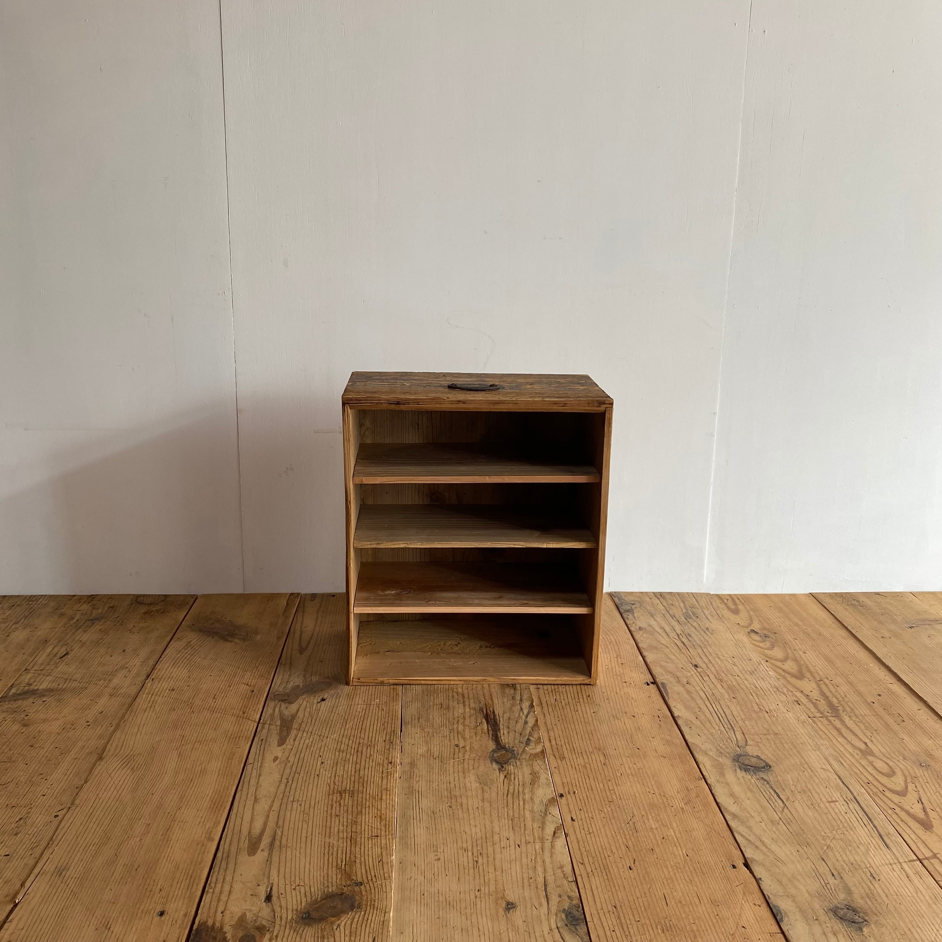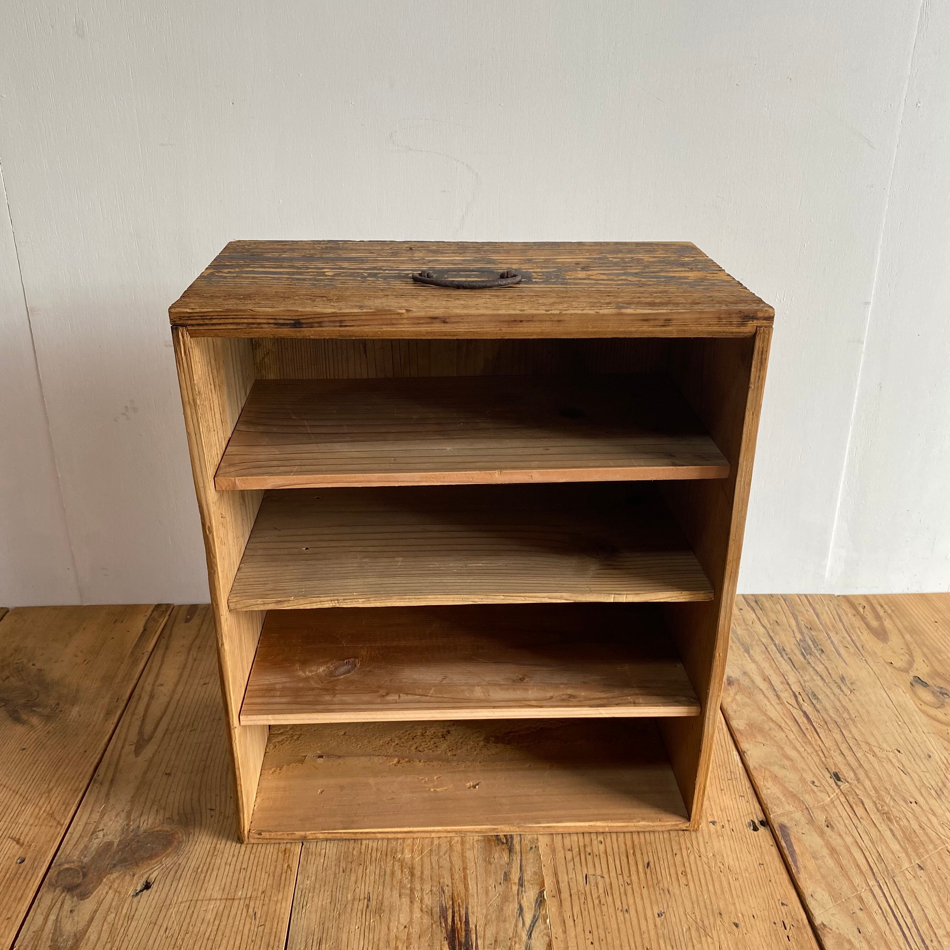 アンティーク 木材棚 取っ手付き 無垢材 無塗装 食器棚 小物入れ z869 送料無料