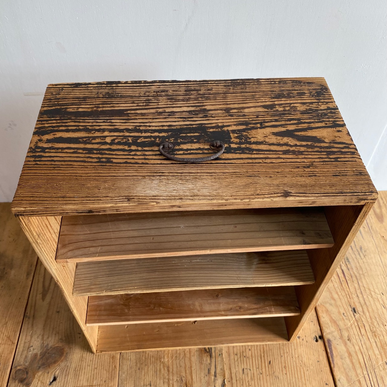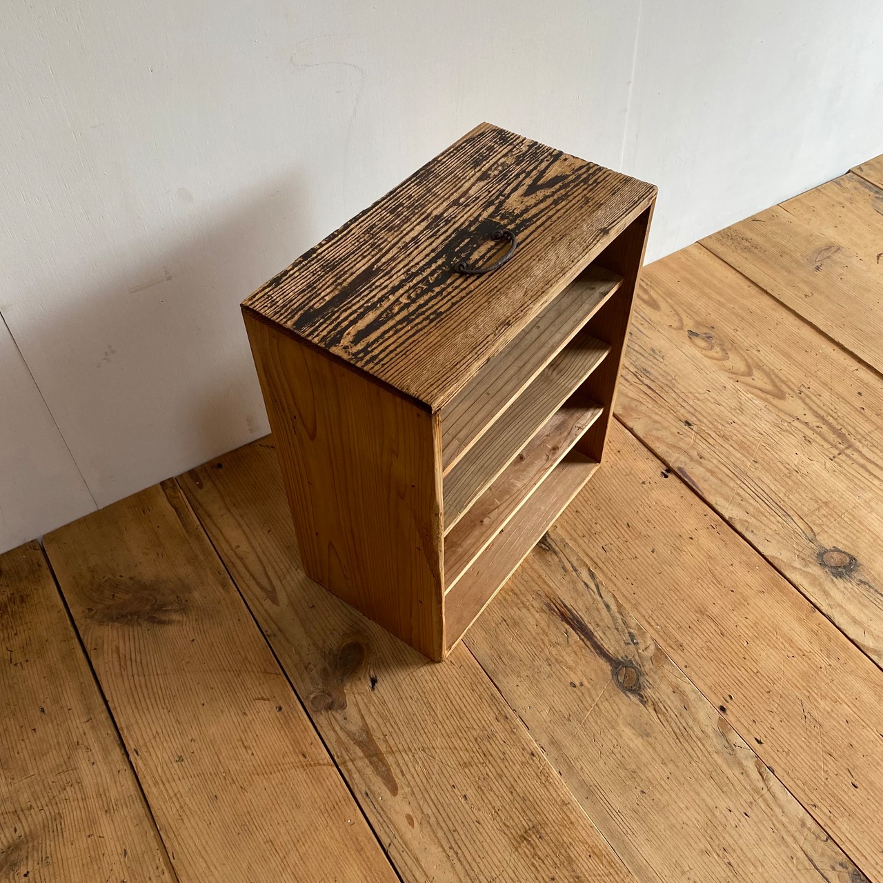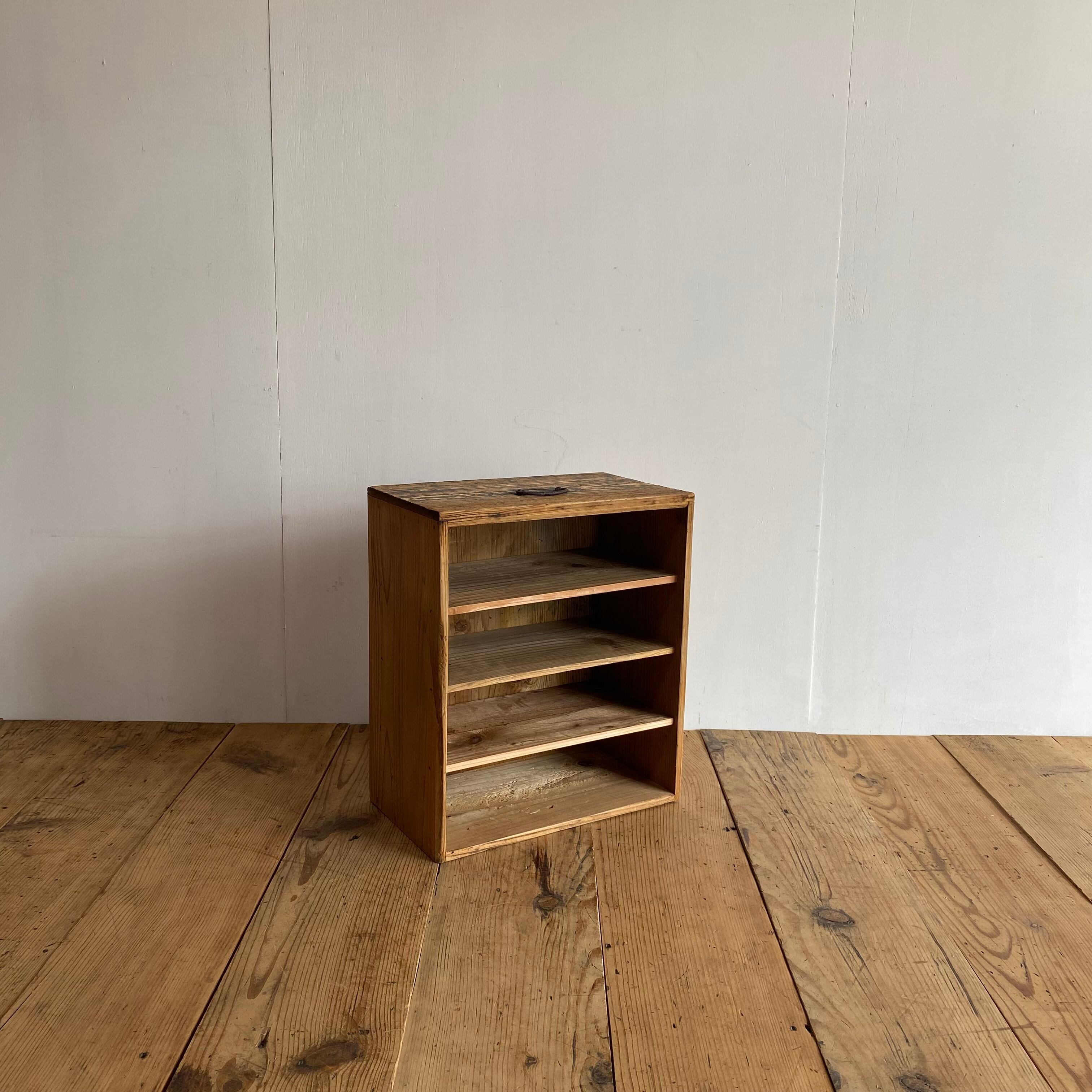 アンティーク 木材棚 取っ手付き 無垢材 無塗装 食器棚 小物入れ z869 送料無料